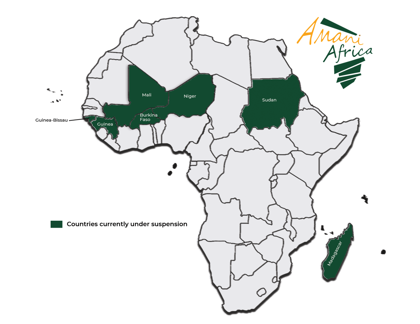 Guinea was suspended by the PSC on 10 September 2021 from participation in all AU activities following the military coup of 5 September 2021 led by the current President, General Mamadi Doumbouya. Since then, the political transition in the country experienced delays, notwithstanding the two-year transition period agreed between Guinea and the regional bloc, ECOWAS, in October 2022. However, in 2025, Guinea took steps to complete the political transition.