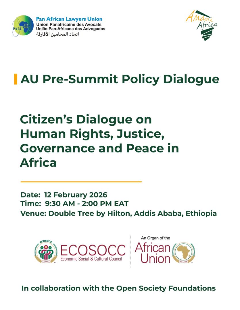 Citizens’ Dialogue on Human Rights, Justice, Governance and Peace Date: February 12, 2026 Location: Double Tree by Hilton, Addis Ababa and Online Concept NoteAgenda